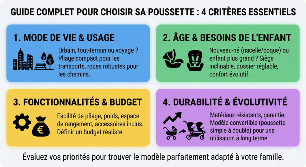 Avant même de regarder les marques, faites le point sur votre mode de vie. Une erreur fréquente est de craquer pour un design sans penser à la logistique quotidienne. La « meilleure » poussette est celle qui répond à vos contraintes physiques et géographiques.
